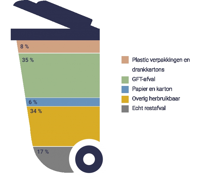 Stap 2: Over een paar jaar voeren we een evaluatie uit en maken we de volgende stap. Dan zamelen we een keer per vier weken het restafval in. Nu is dat nog een keer in de twee weken.