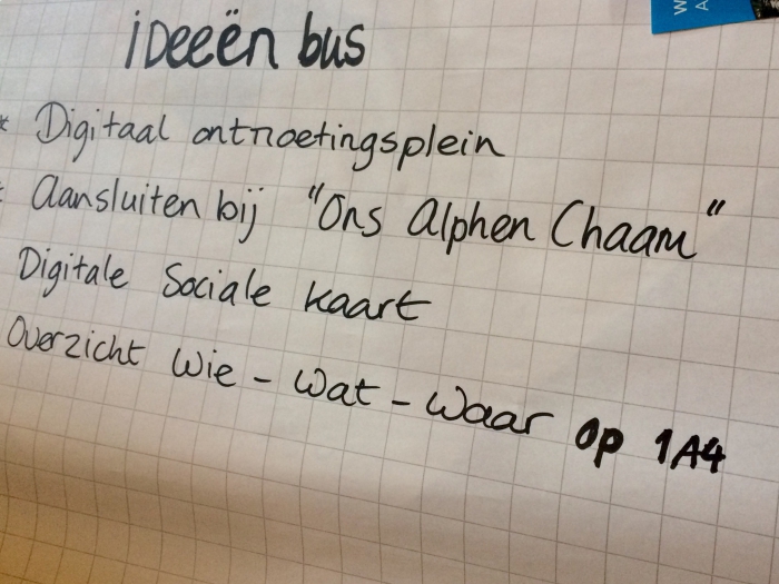 Tijdens de netwerkbijeenkomst van het CJG deze middag in het Cultureel Centrum Den Heuvel kwam OnsAlphenChaam in de ideeën bus!