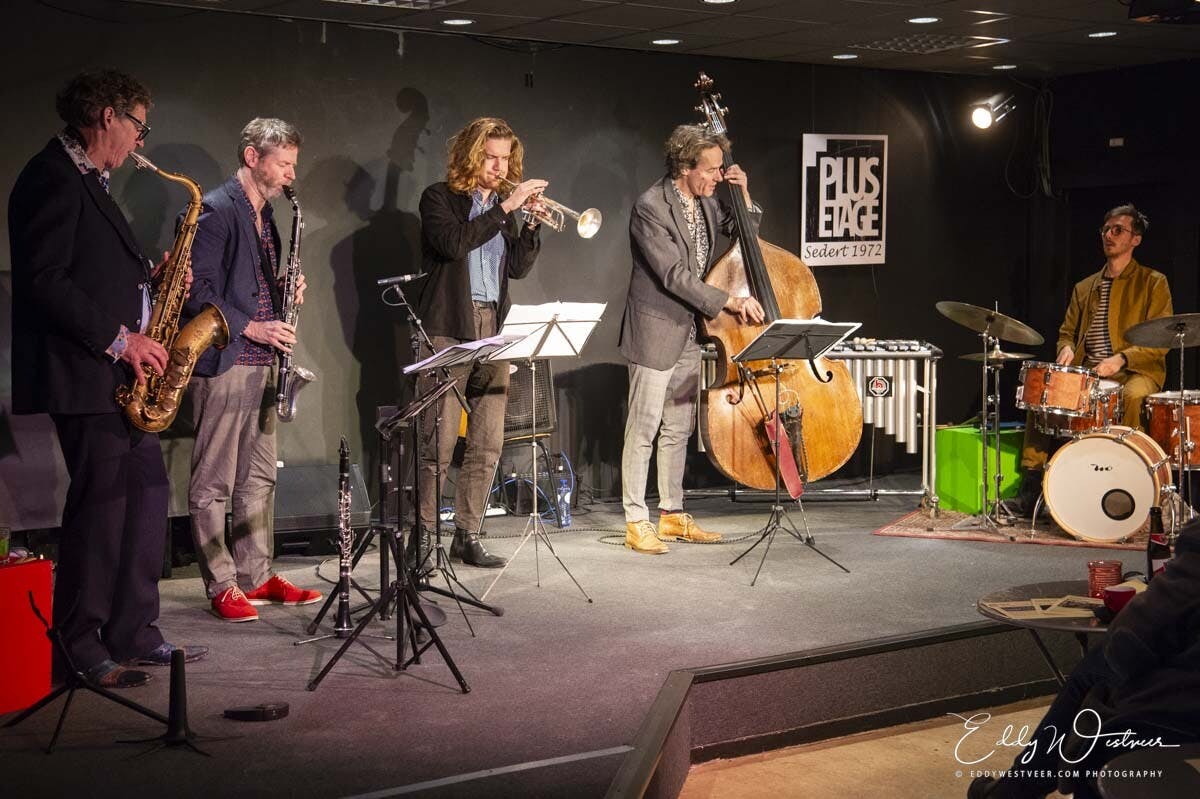 We waren al onder de indruk van het album van dit sympathieke vijfmanschap. Het optreden op het Nederlands-Belgische podium van de PlusEtage maakte het allemaal nòg mooier en boeiender. Stuk voor stuk onderscheidende stukken met een krachtige drive en een spannende beat. Zoals het met een improvisatie van Colen openende Almost Close, dat stuwend naar grote hoogte ging en uiteindelijk even prikkelend eindigde als dat het begon. Het beeldende Lost in the Woods schildert een dramatische zoektocht in het bos met fraaie soli van de blazers.