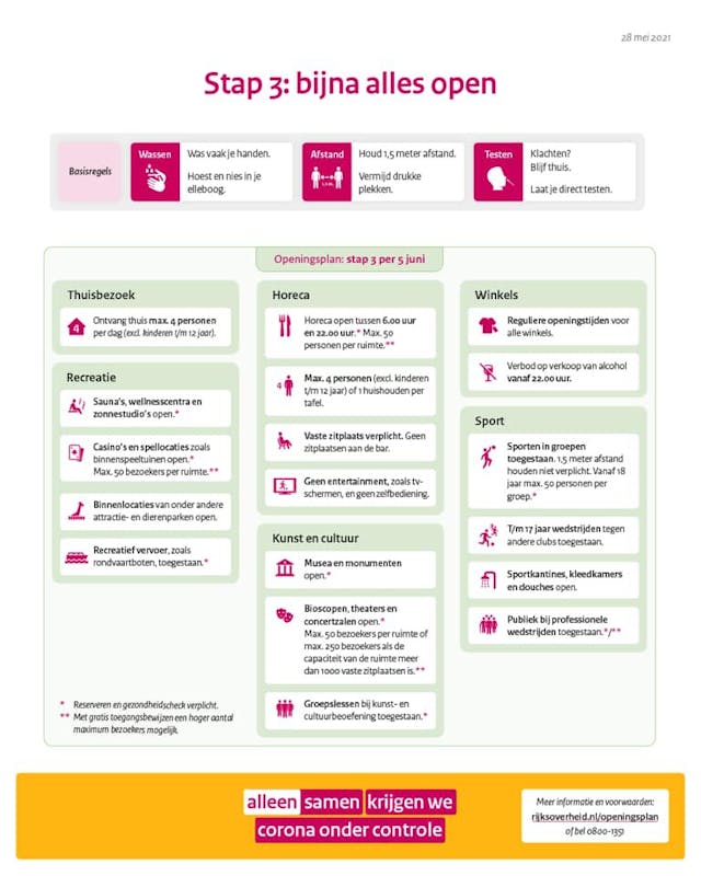 Op 5 juni zetten we de derde stap van het openingsplan en gaat bijna alles open, waaronder restaurants en cafés, bioscopen en musea.