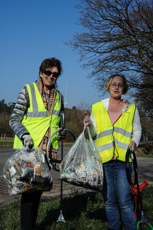 Deze twee dames hebben in één uur tijd deze twee plastic zakken vol met rommel opgeruimd van de Gilzeweg.