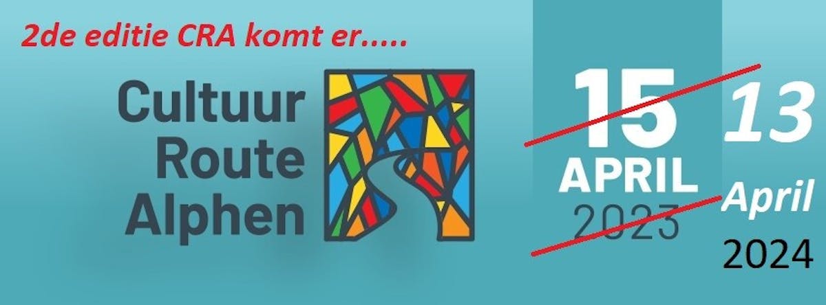 Zet het in de agenda, op de kalender; 2de editie CultuurRouteAlphen zaterdag 13 april 2024. Daar moet je (weer) bij zijn!