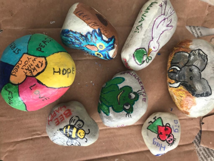 De stenen leg ik neer op plaatsen waar mensen ze kunnen vinden. Het tovert dan een lach op hun gezicht